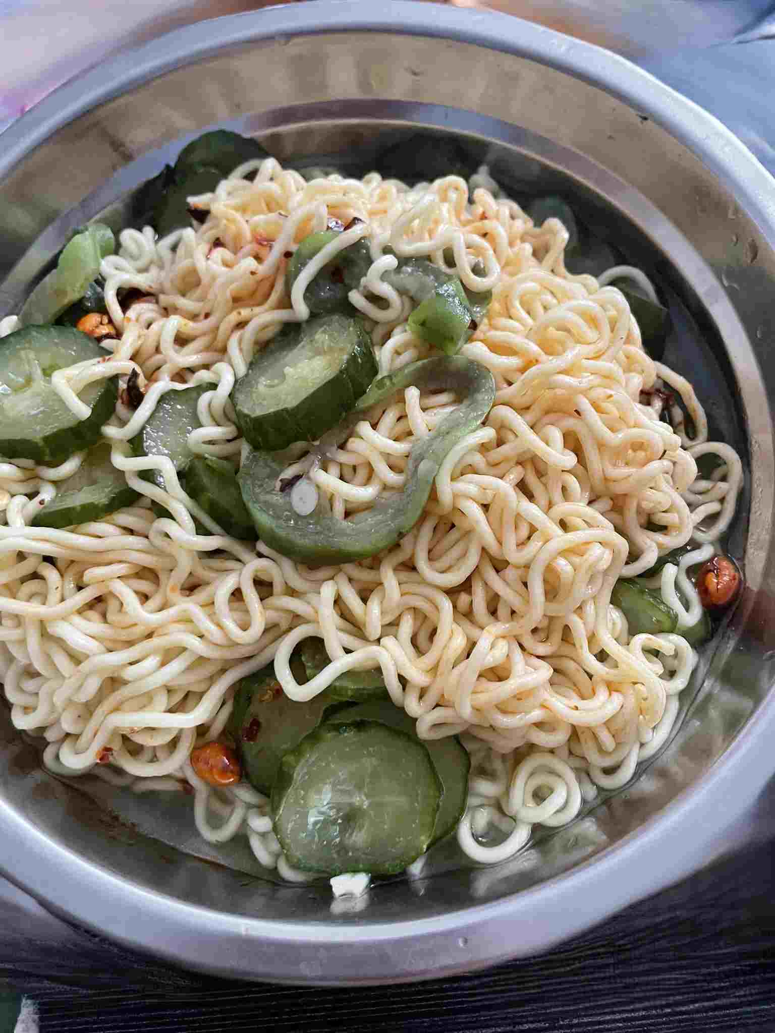 2025.8.2 有时间的话做什么,暗室亏心吗,中午做了面条,其实只是泡面,两包,还有两个黄瓜,一个丝瓜,煮熟的,